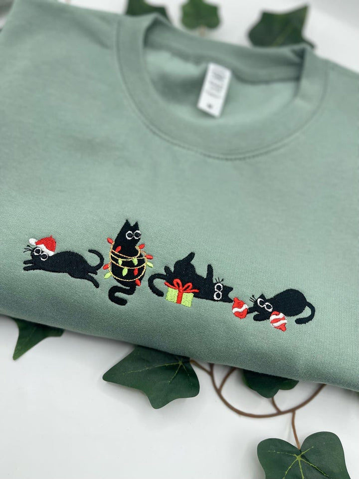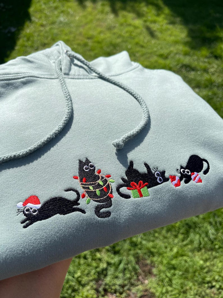 Black Cat Christmas Embroidered Sweatshirt Hoodie