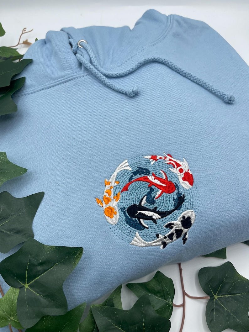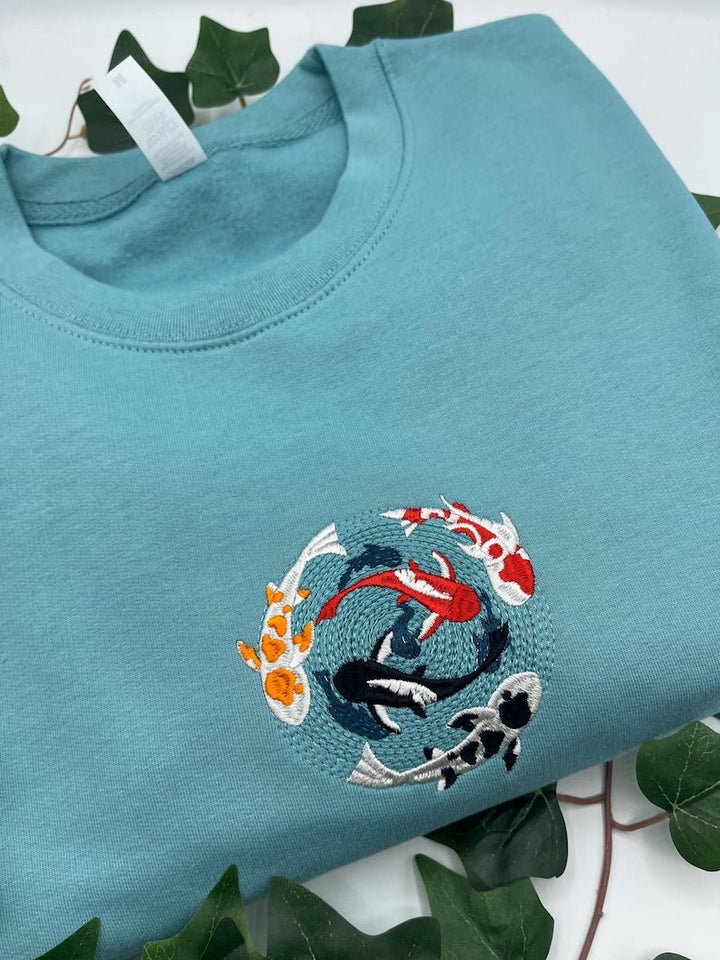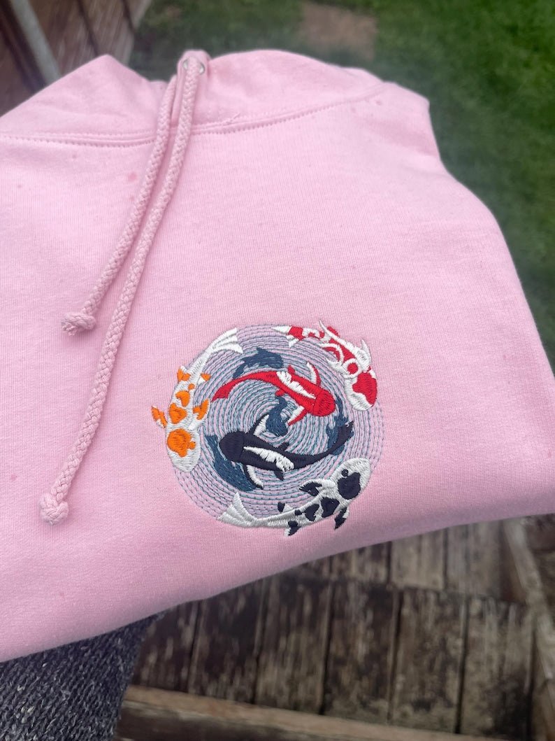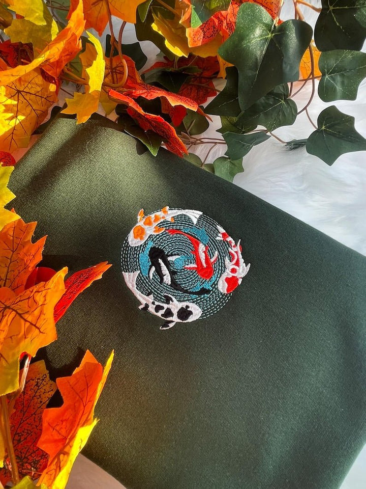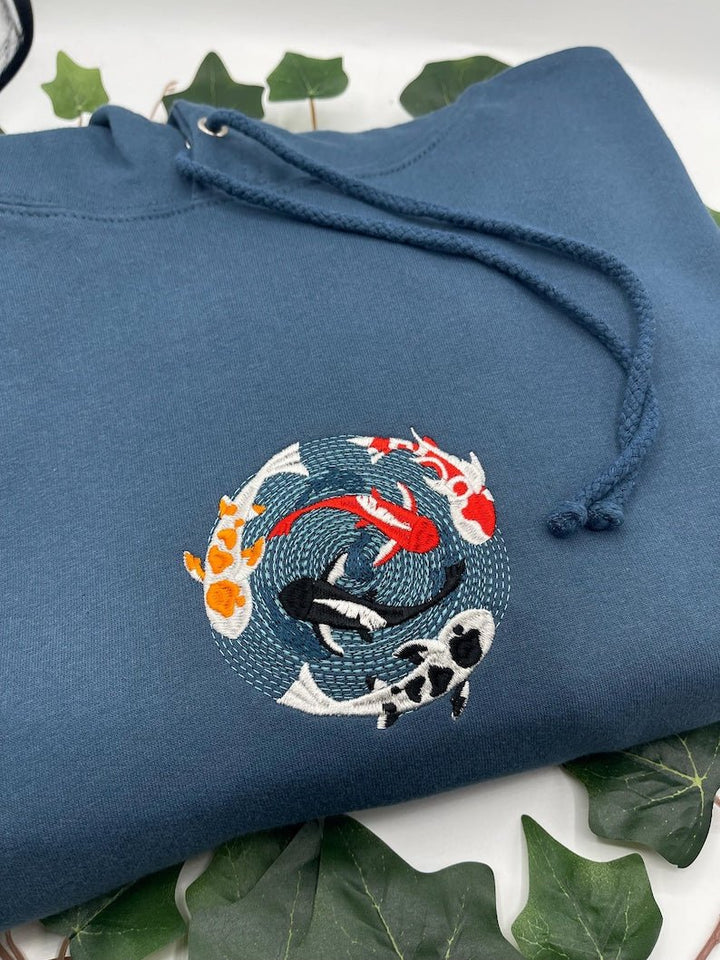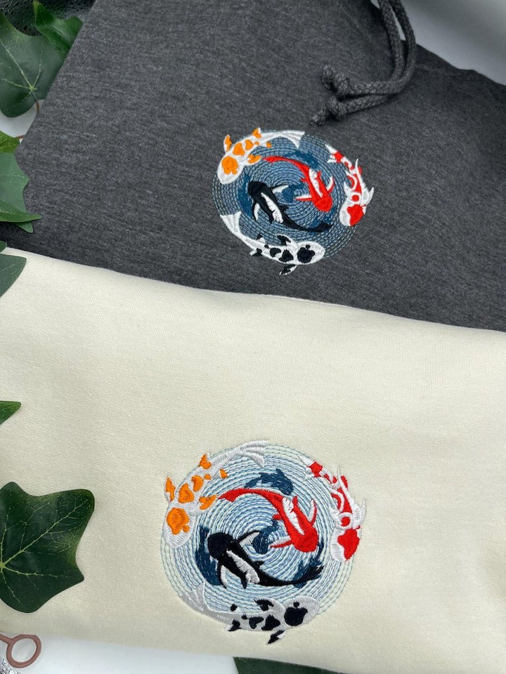 Koi Fish Japanese Cottagecore Embroidery Sweatshirt Hoodie